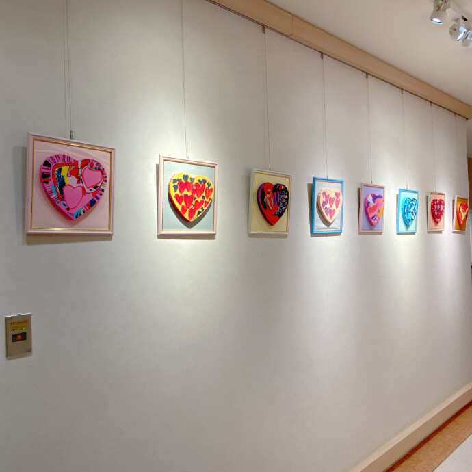 一つひとつ異なる表情を持つハートたちが、ギャラリー全体を温かく包み込みます。