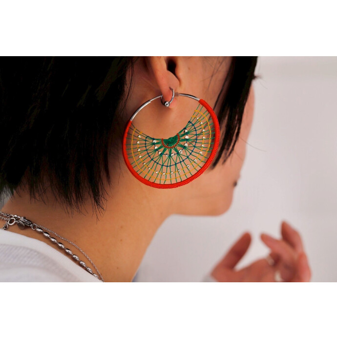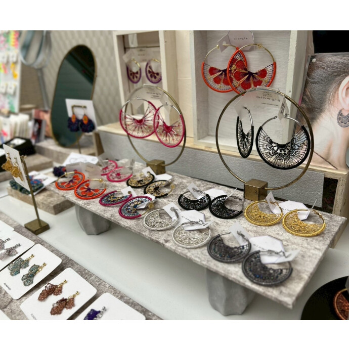 南米刺繍ニャンドゥティやマクラメ編みなどの技法により個性的なアクセサリーを制作。