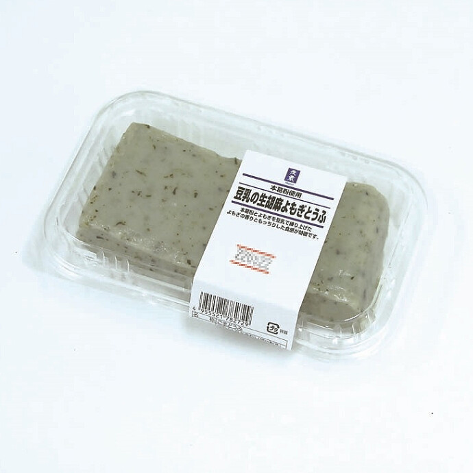 『生胡麻よもぎ豆腐』1パック 389円(税込) 春を感じさせるヨモギの香りとやさしい甘みの、和菓子のような生胡麻とうふです。 もちろんモッチリとした食感も健在! 土曜日&春~秋の限定商品です。