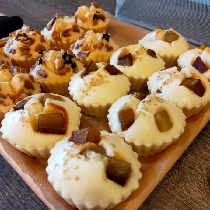 こめのこcafe様より米粉で作った蒸しパン、シフォンケーキ、焼き菓子を納品して頂いております。