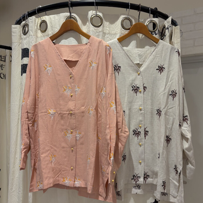春•夏に長く着られる総刺繍のリネンレーヨンのブラウスです。