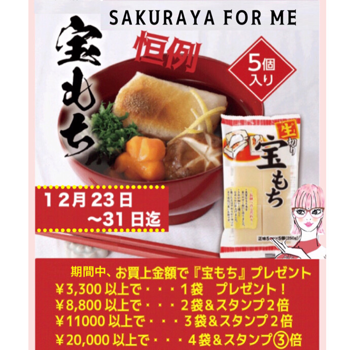 期間中、お買い上げ金額に応じて『宝もち』プレゼント🎁