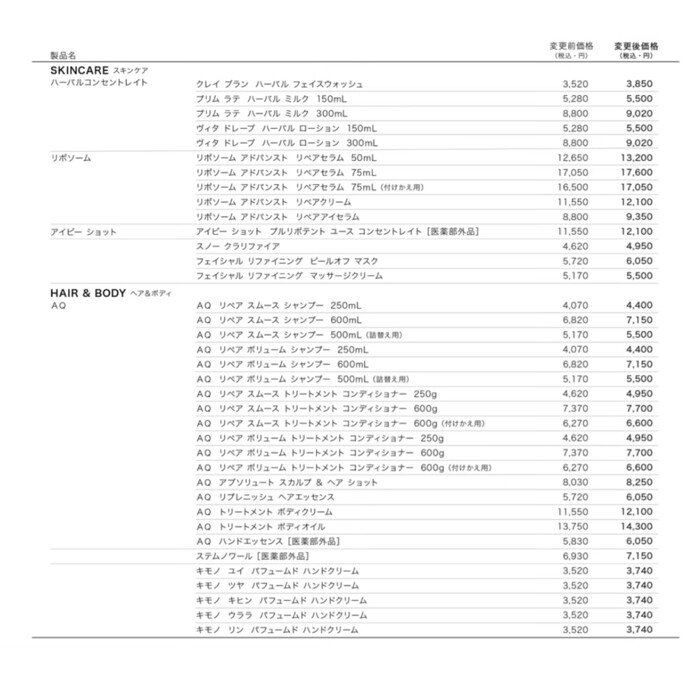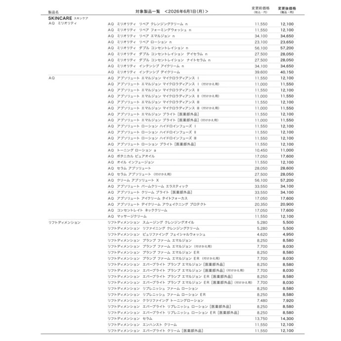 2026年6月1日より、コスメデコルテ一部商品を価格改定致します。