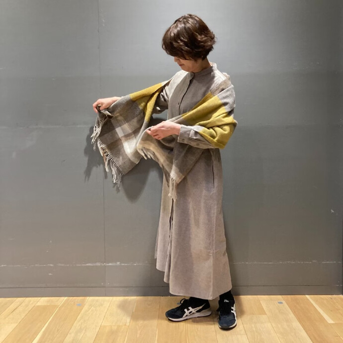 商品名: 両面起毛フランネルスタンドカラー長袖ワンピース