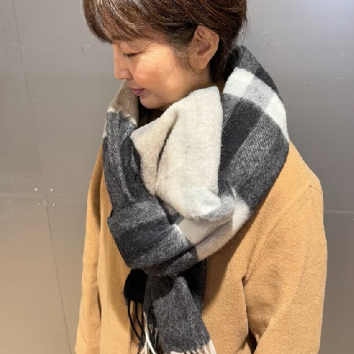 商品名:ウール ひざ掛けにもなる 大判ストール(チェック)