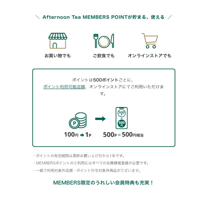 お買い物やご飲食でポイントが貯まったり、会員ステージごとのスペシャルな特典で、