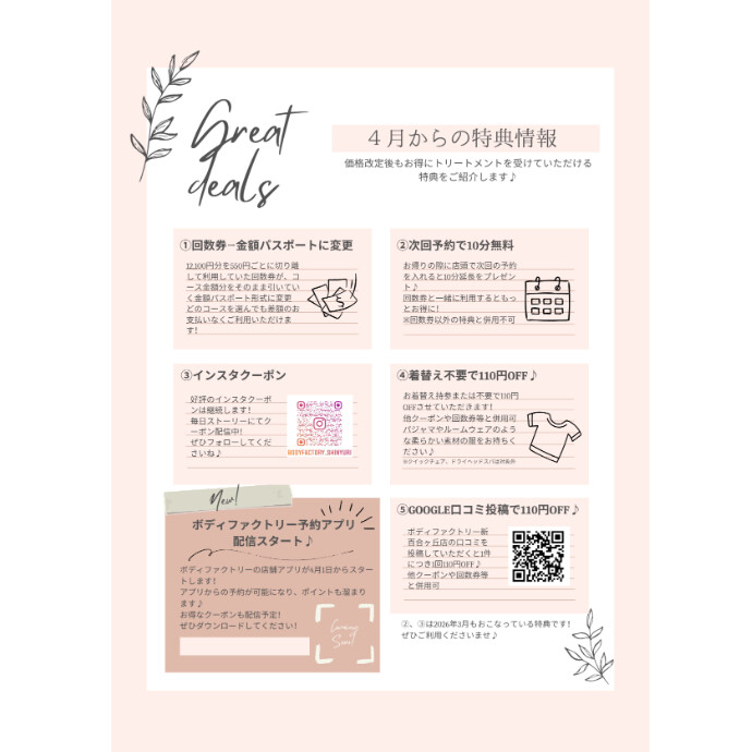 価格改定後もお得にトリートメントを受けていただける特典をご用意しております。