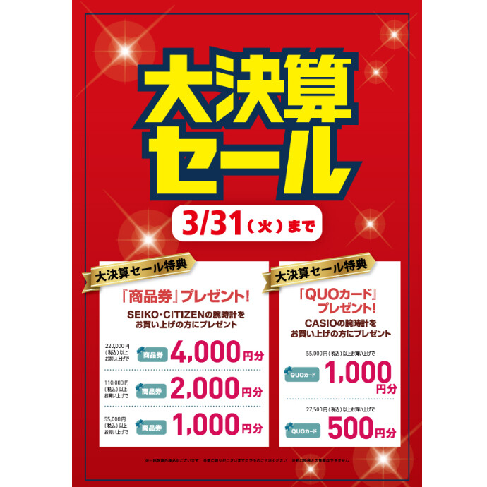 ただいま当店では~3/31(火)までの期間、春の大決算セールを開催しております‼️