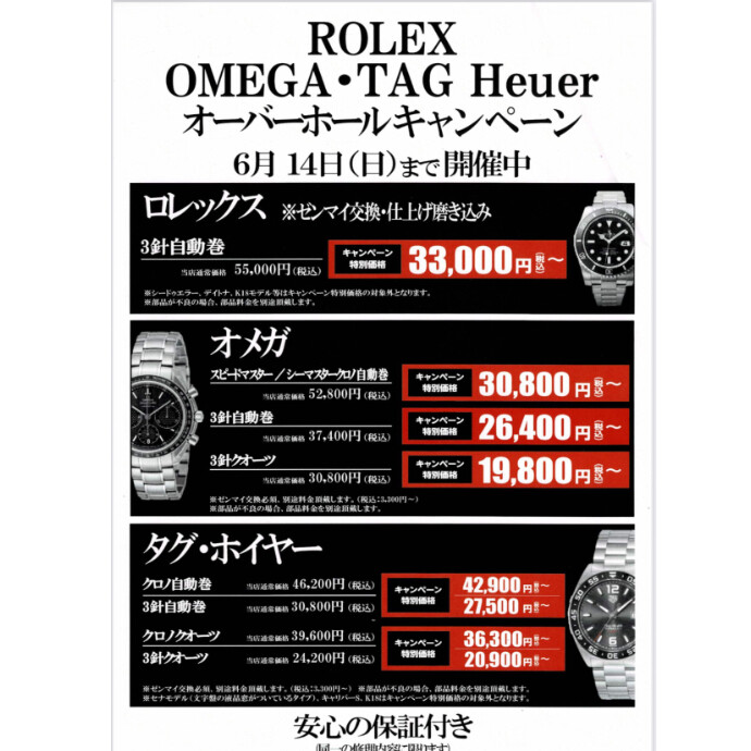本日はいつもご好評頂いておりますオーバーホールキャンペーンのご案内でございます🌠