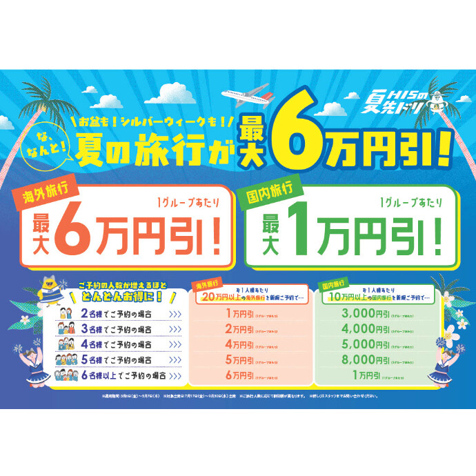 今年の夏は先ドリ&6名様以上の大人数で賑やかな旅行だと超お得!!