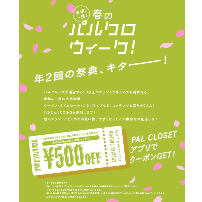 3COINSでは「PAL CLOSET」アプリ会員全員に
