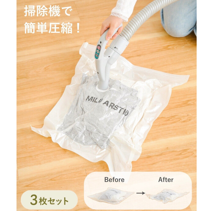 新作の収納アイテム‼️ かさばるお洋服を一気に圧縮します‼️ ☑️収納用圧縮袋S 3枚セット ¥330 ☑️収納用圧縮袋M 2枚セット ¥330 ※在庫状況は日々変動いたします。予めご了承下さい。