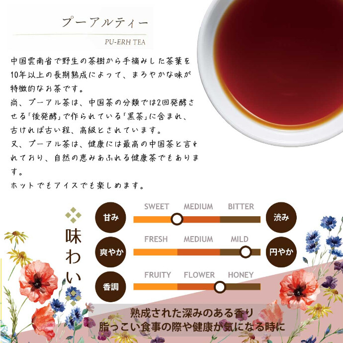 ・中国 雲南省の茶葉を台湾で最終加工したプーアルティーです。