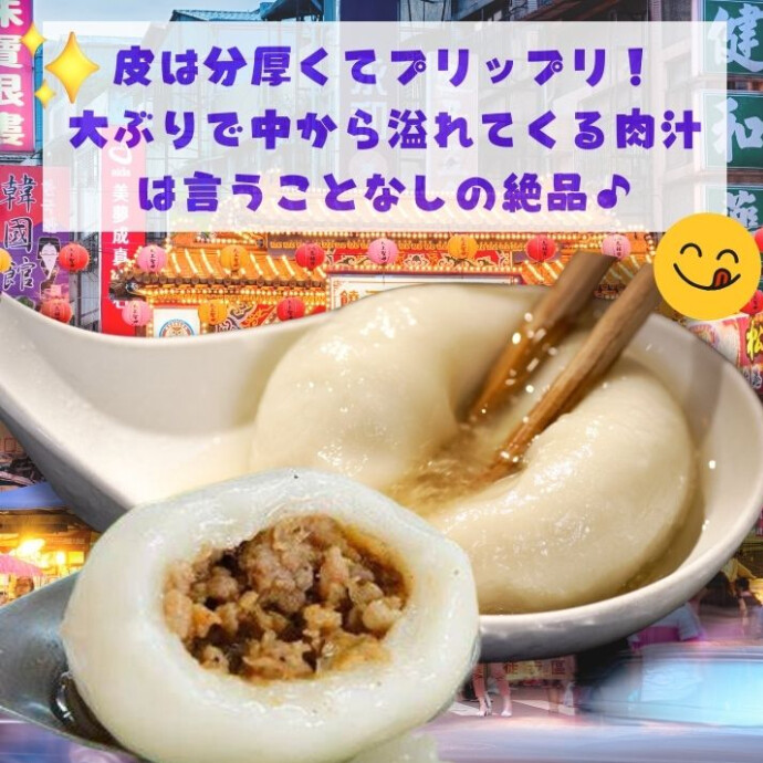 小龍包のようなあふれる肉汁ともっちもちの皮が特長。
