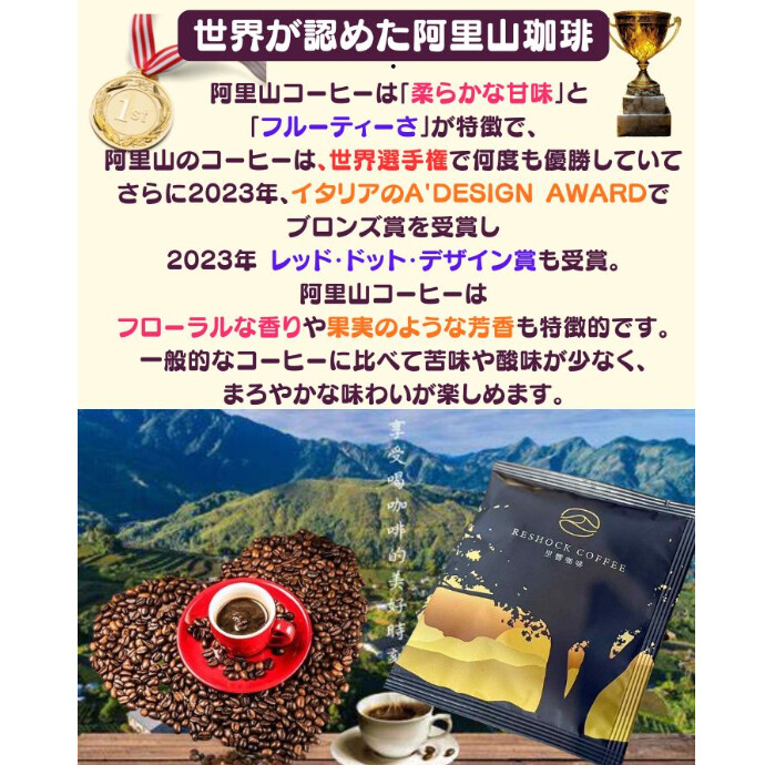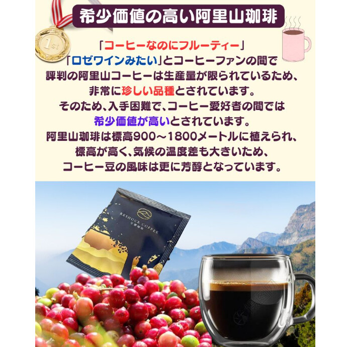 阿里山コーヒーは、台湾中央部の美しい阿里山地域で栽培された、