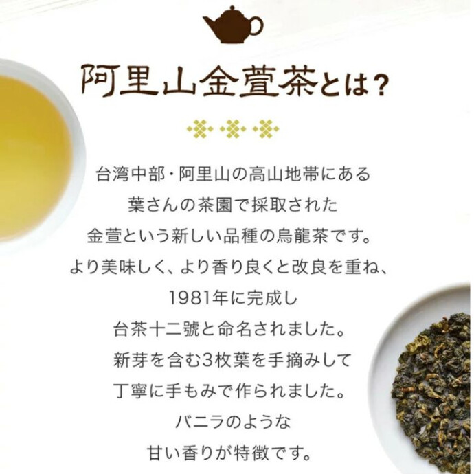阿里山金萱茶は、台湾の豊かな自然環境と伝統的な製茶技術が生み出した、