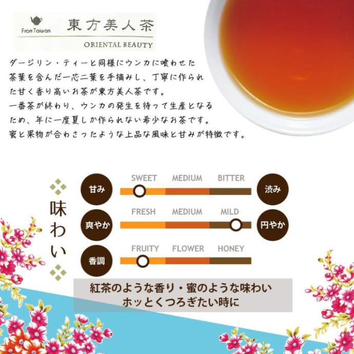 お求めやすい使い切りサイズの「東方美人」リーフティーバッグ。