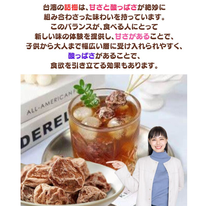 台湾産の話梅はしっとりとした上品な甘味が特徴です。