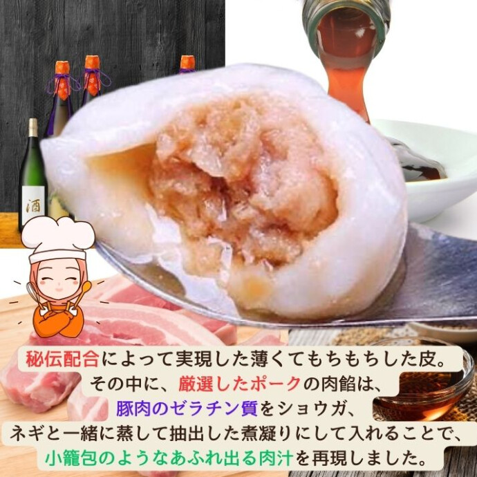 小龍包のようなあふれる肉汁ともっちもちの皮が特長。