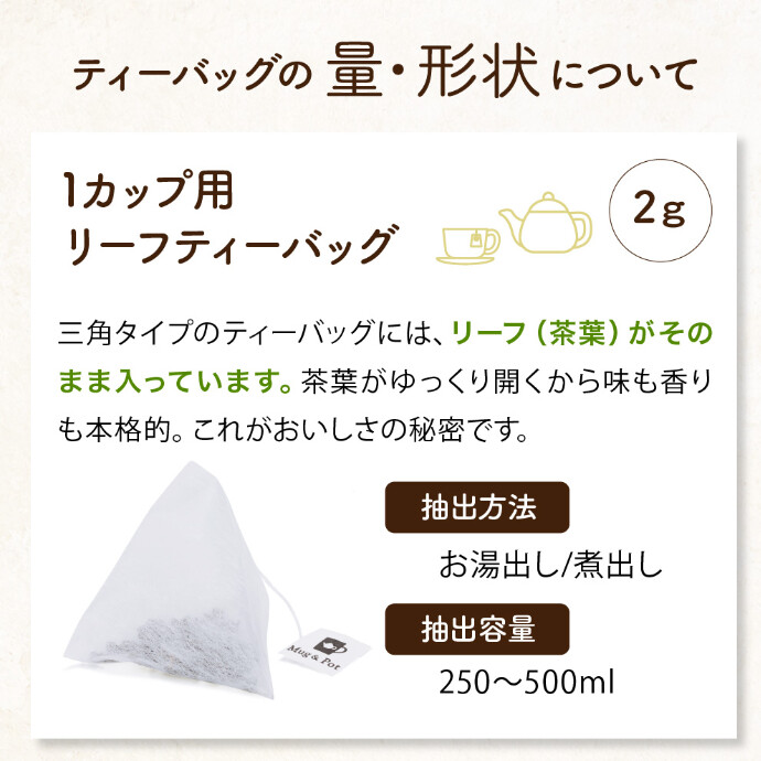 便利な三角ティーバッグタイプで、本格的な味と香りを手軽にお楽しみいただけます。