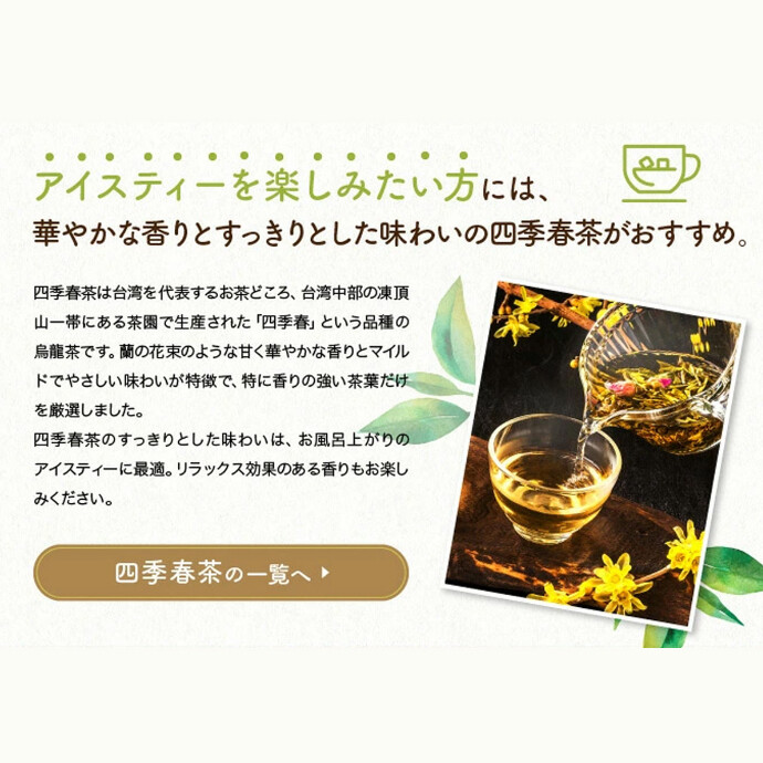台湾中部の美しい凍頂山で大切に育まれた「凍頂四季春茶」は、