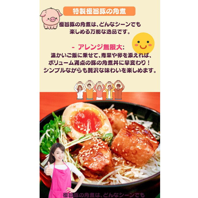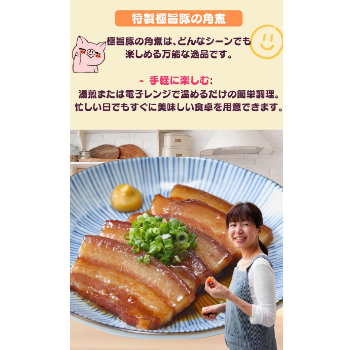 この角煮は、どんなシーンでも楽しめる万能な一品です。