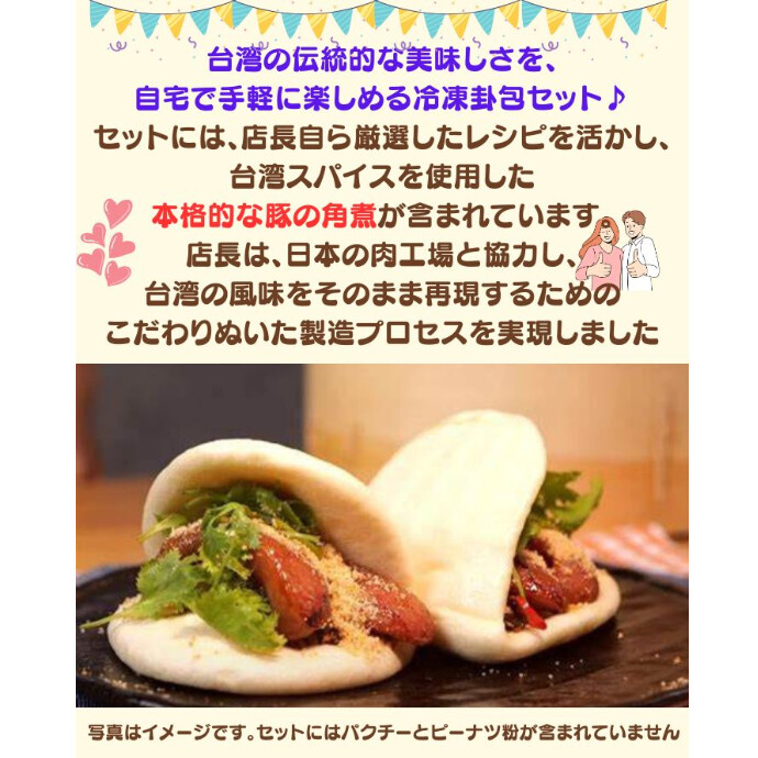 ※ 刈包の皮は無防腐剤・無添加で、モチモチとした食感が特徴で、そのままでもとても美味しく召し上がれます。