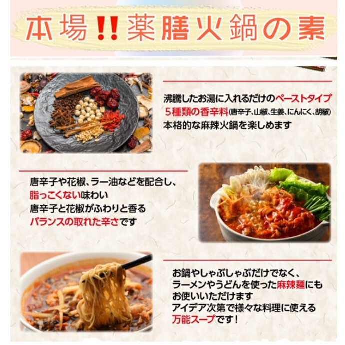 自宅で手軽に楽しめる薬膳火鍋を、ぜひお試しください。あなたの食卓が、たちまち四川の味覚で彩られることでしょう。