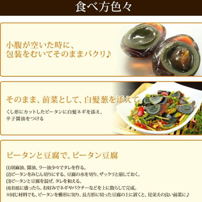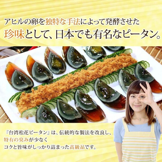 アヒルの卵を独特な手法によって発酵させた珍味として、