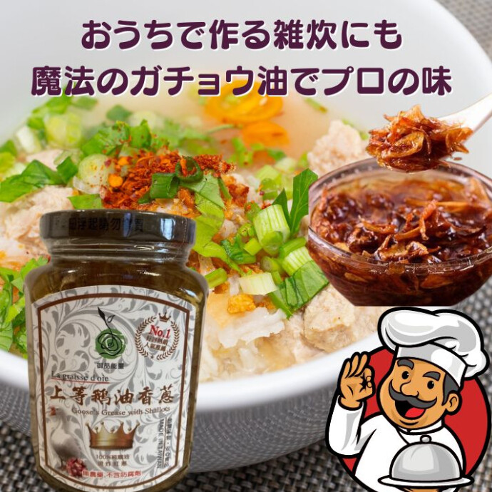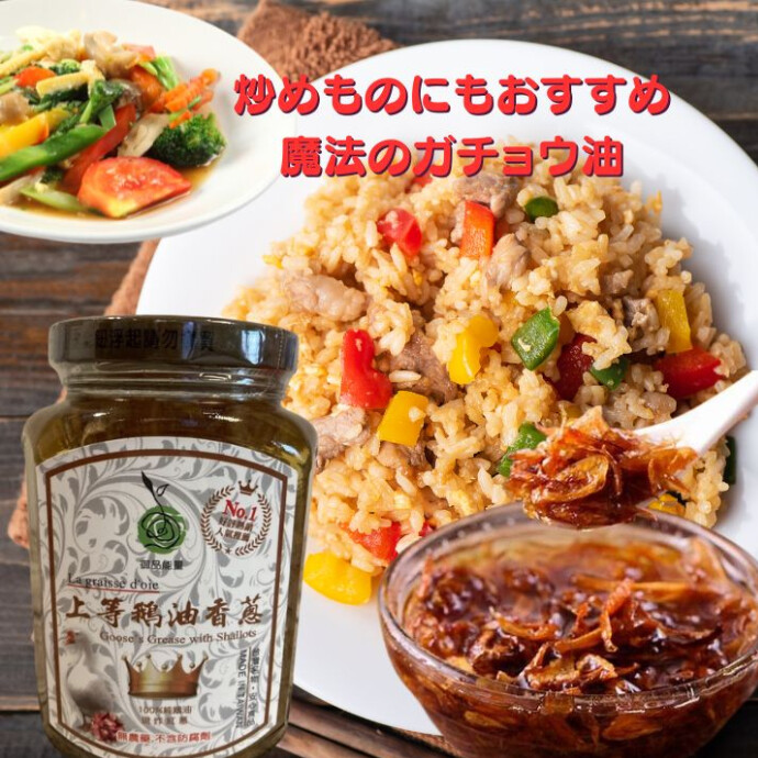 温かいご飯の上に鵝油金葱をほんの少しのせてお試しください。