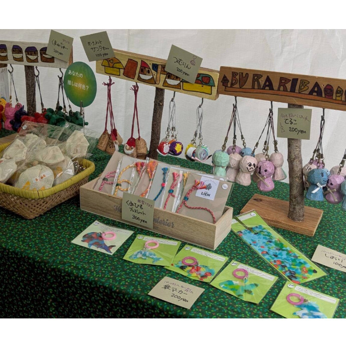 利用者さんが心を込めて作った、温もりあふれるクラフト作品も並びます。ぜひお気に入りを見つけてください。