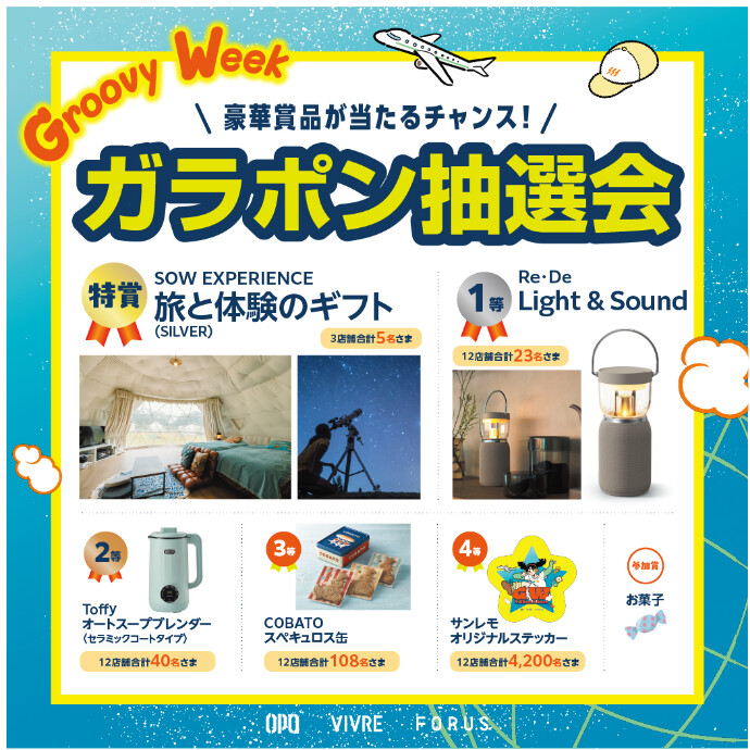 5/5(火・祝)・5/6(水・休)の期間中、高崎オーパでは「GroovyWeekガラポン抽選会」を開催!