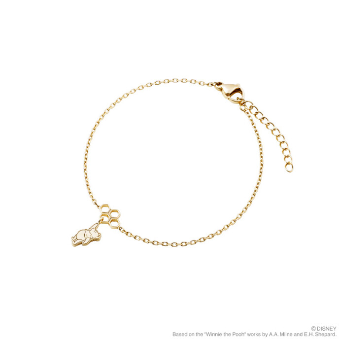 幸運の象徴である蜂の巣モチーフと"プーさん"を組み合わせたブレスレット。