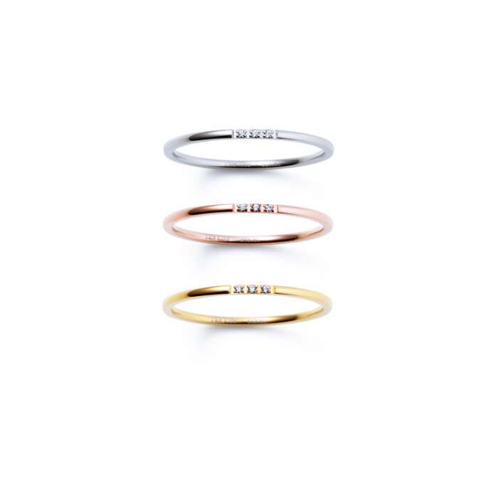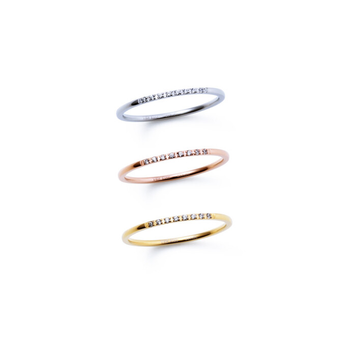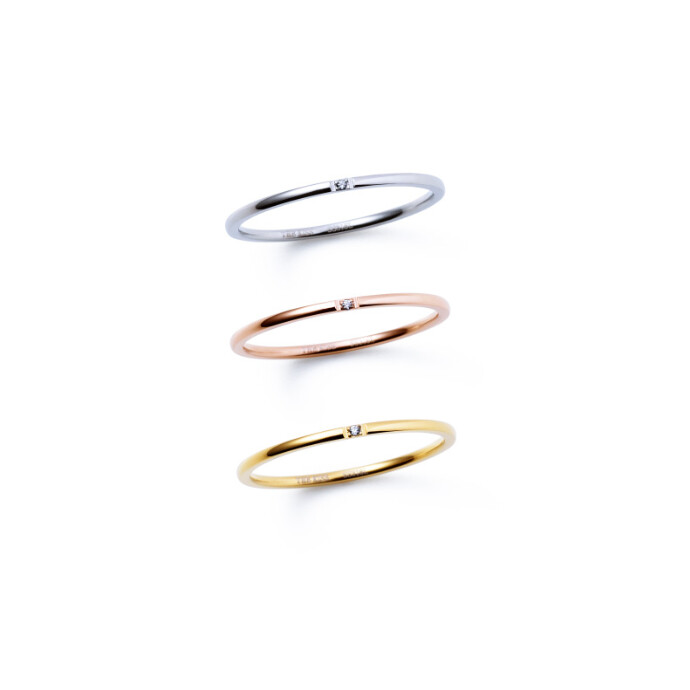 まるで肌に溶けこんでしまいそうな華奢なフォルムのストレートリング。