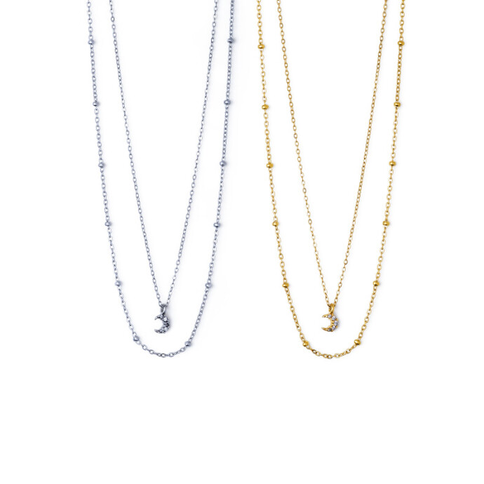 異なるデザインを組み合わせた2連ネックレス。