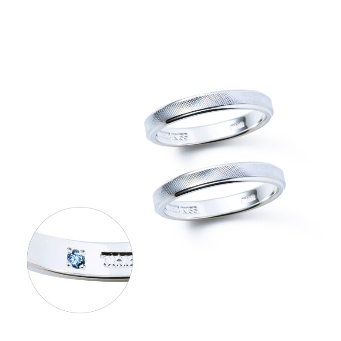 「幸せで満ちあふれますように」との願いを込め、リング内側にはブルーのラボグロウンダイヤモンドをセット。まるでふたりの幸せを見守ってくれているよう。