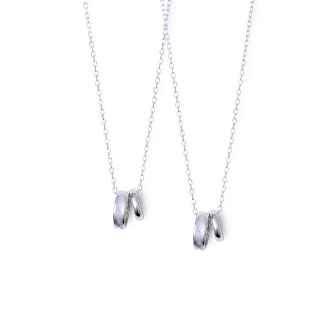 全体に繊細なカットを施したリングが印象的なペアネックレス。