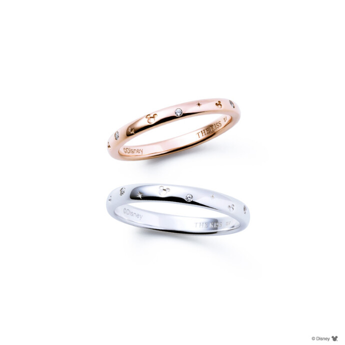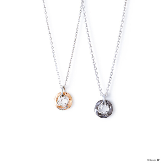 シンプルなフォルムに、ミッキーアイコンやストーンをランダムにあしらった遊び心あるデザイン。