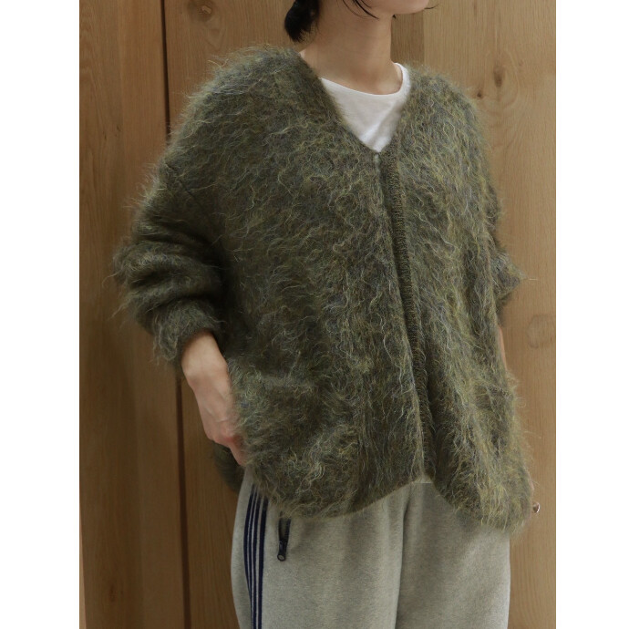 存在感溢れるニットは、モヘヤを使用して作られたVネックカーディガン。