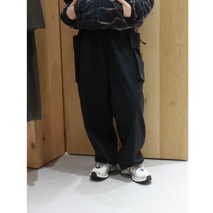 ウエストはゴム仕様で内側にドローストリングを配置しているため、デイリーにもおすすめの一着です。
