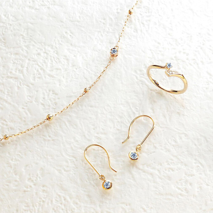 ダイヤモンドの輝きが手元を明るく彩り、オフィスシーンにもオフシーンにも活躍する スタッフおススメの人気ジュエリーです。