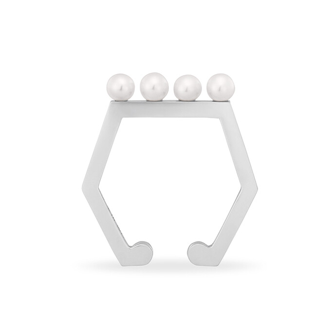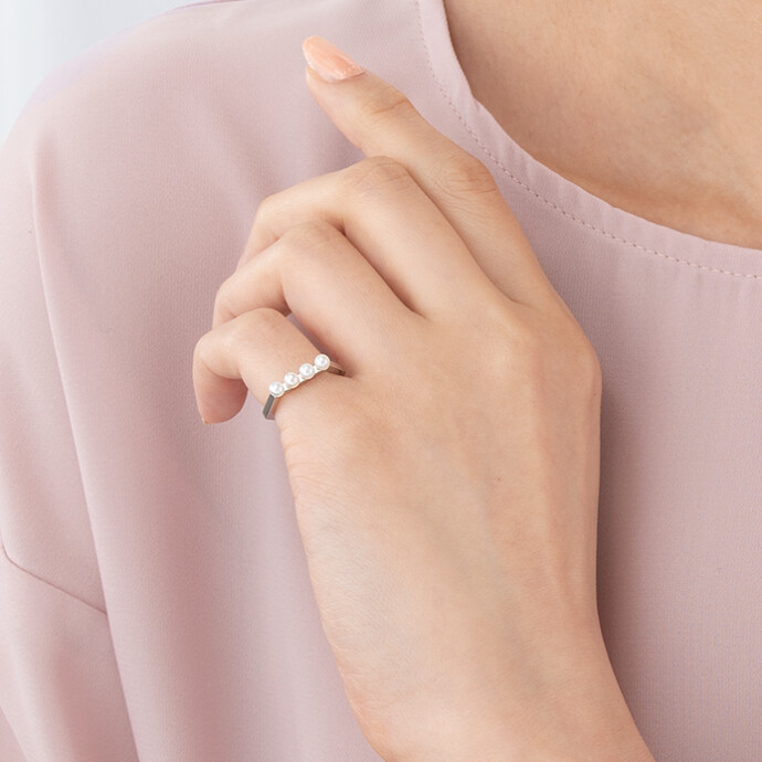 ハンサムでクールな直線ラインに、淡水パールをセッティングすることでレディライクな印象に。