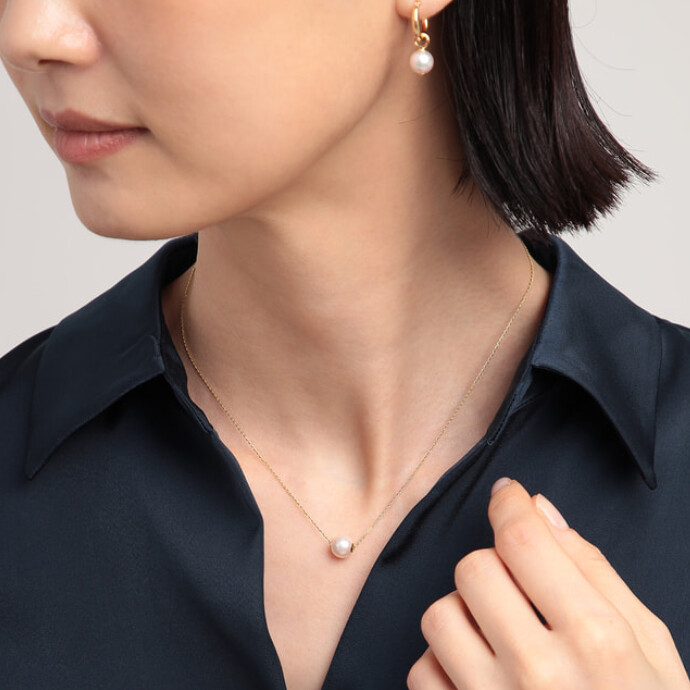 繊細にきらめくミラーカットチェーンに一粒のアコヤパールを通したネックレスは、シンプルだからこそシーンを選ばず装いにマッチし、フォーマルから日常使いまで幅広く活躍するアイテムです。