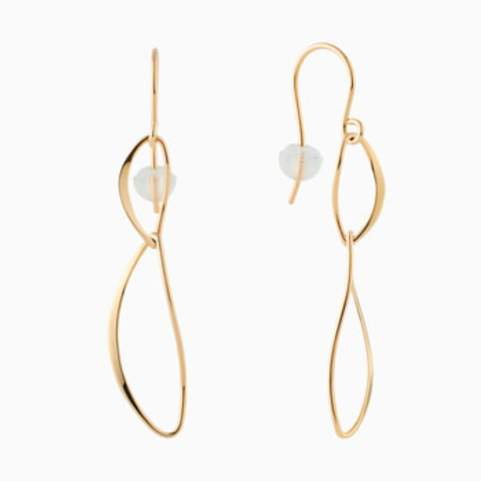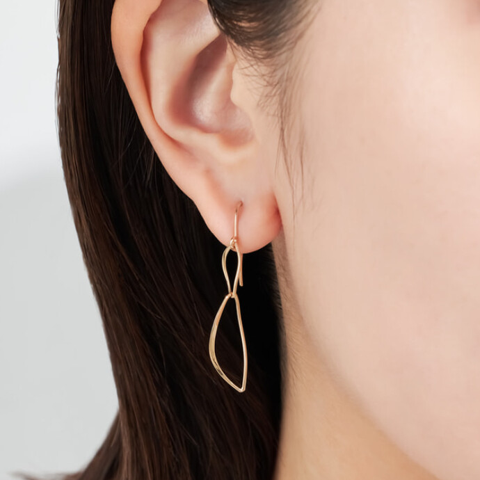 洗練されたラインのゴールドのパーツが揺れる、フックタイプのピアス。