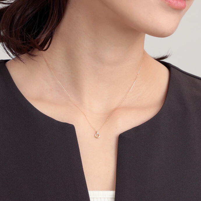 丁寧に仕立てたミニマルなフォルムは、ダイヤモンドのきらめきを際立たせ、デコルテを上品に彩ります。