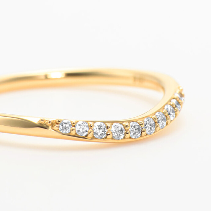 なめらかで美しいUラインを描くハーフエタニティリング。
