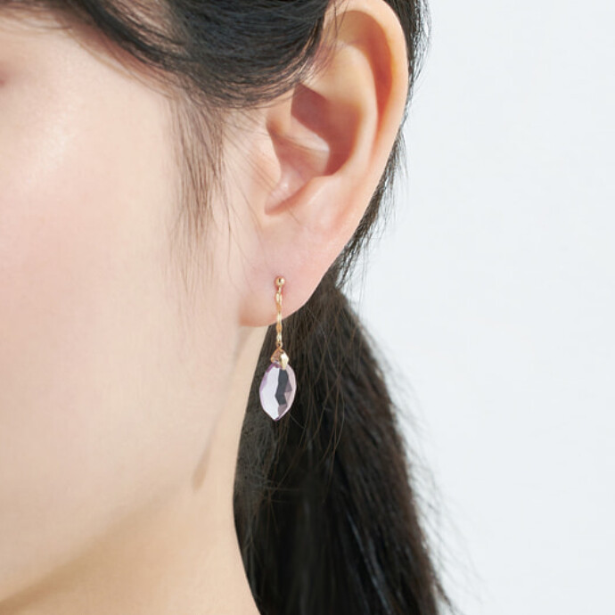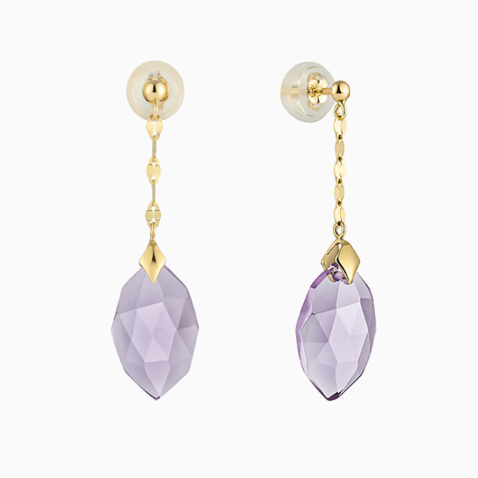 魅惑的で透明感のあるアメシストがゆらゆらと揺れるチェーンピアス。