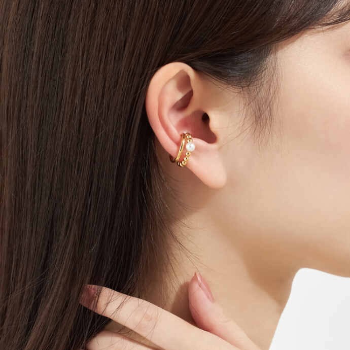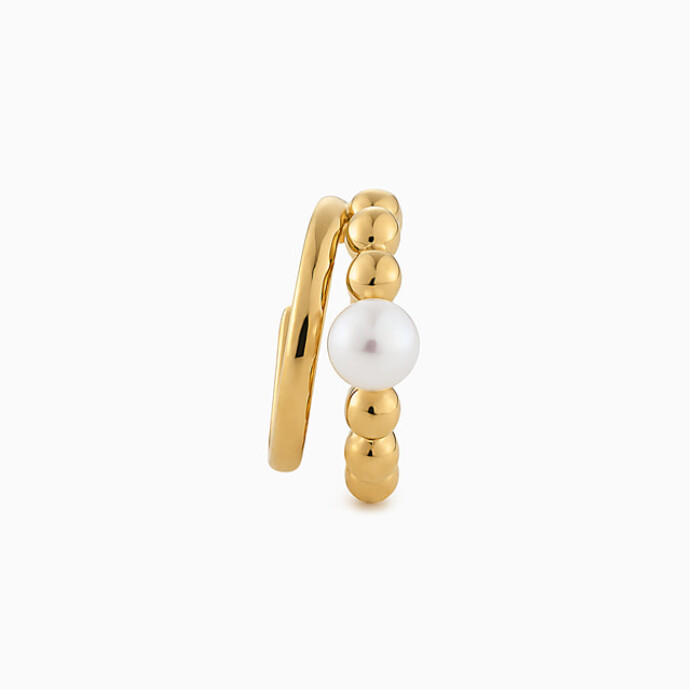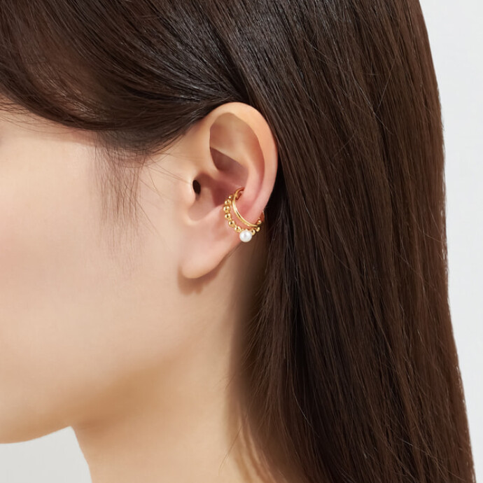 ころんとしたデザインに淡水パールをあしらったイヤーカフ。