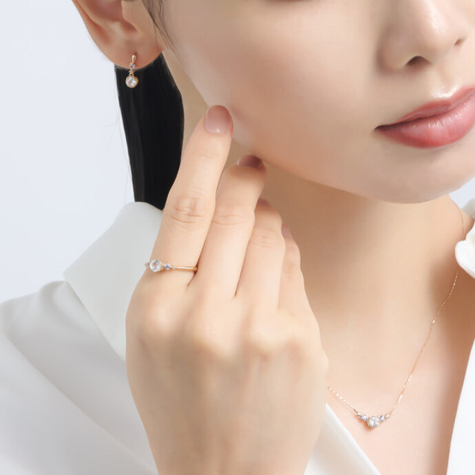揺れるたび、淡いカラーストーンが凛とした気品を演出。