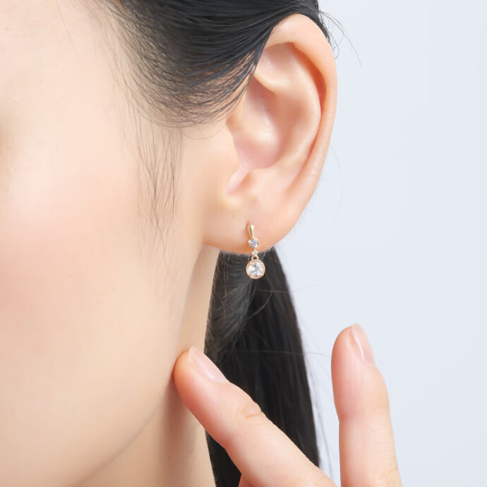 イエローゴールドの地金が柔らかな温もりを添え、顔まわりに華やかな印象をプラス。